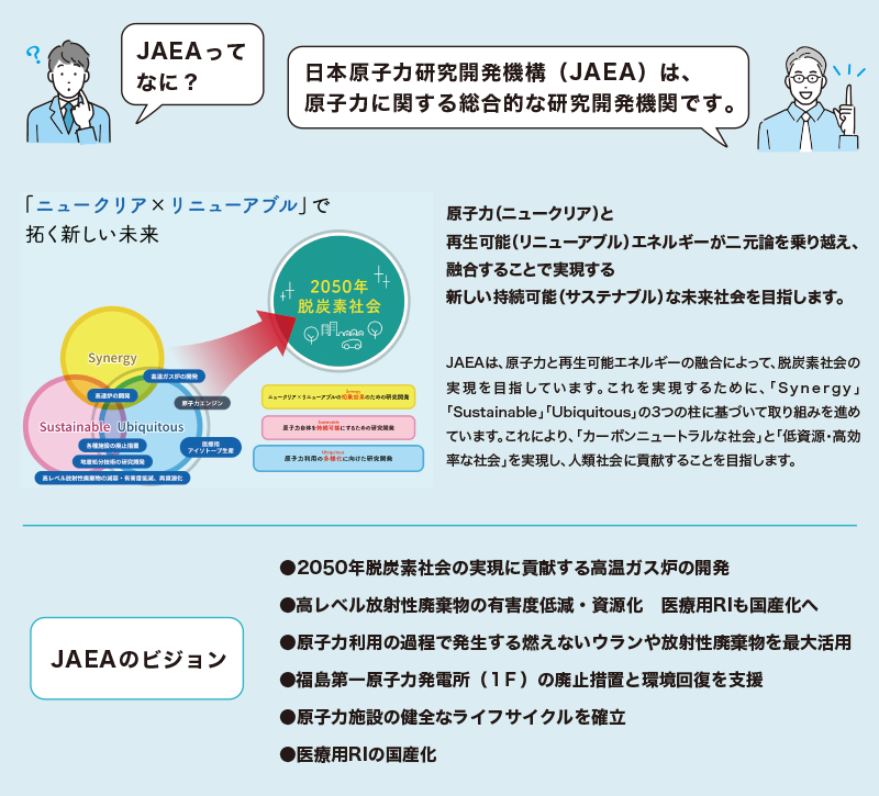 ⽇本原⼦⼒研究開発機構(JAEA)は、原⼦⼒に関する総合的な研究開発機関です。